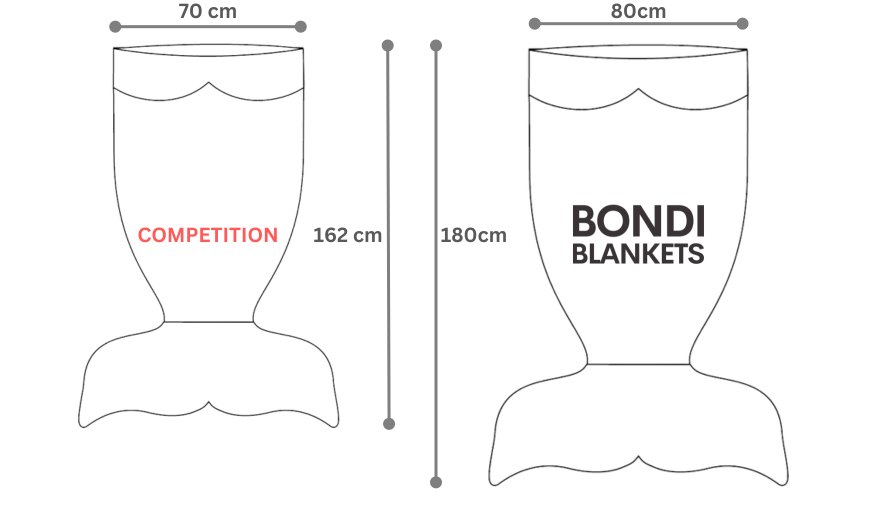 - One Size Fits All: The perfect relaxed fit as the Bondi Mermaid Blanket suits heights from 100cm (3 feet) to 185cm (6 feet). It's tailored to bring joy to all.